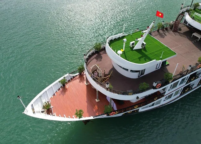 The 5-star Halong Sentosa Cruise Hotel Ha Long is located 1.3 km from Sun World Halong Complex, offering 18 rooms along with a terrace and a shared lounge. This Ha Long botel is in Bai Chay with Vietnamese eateries and seafood restaurants, as well as cozy waterfront bars with a relaxed vibe, 2 km from such natural sights as Ocean Park.